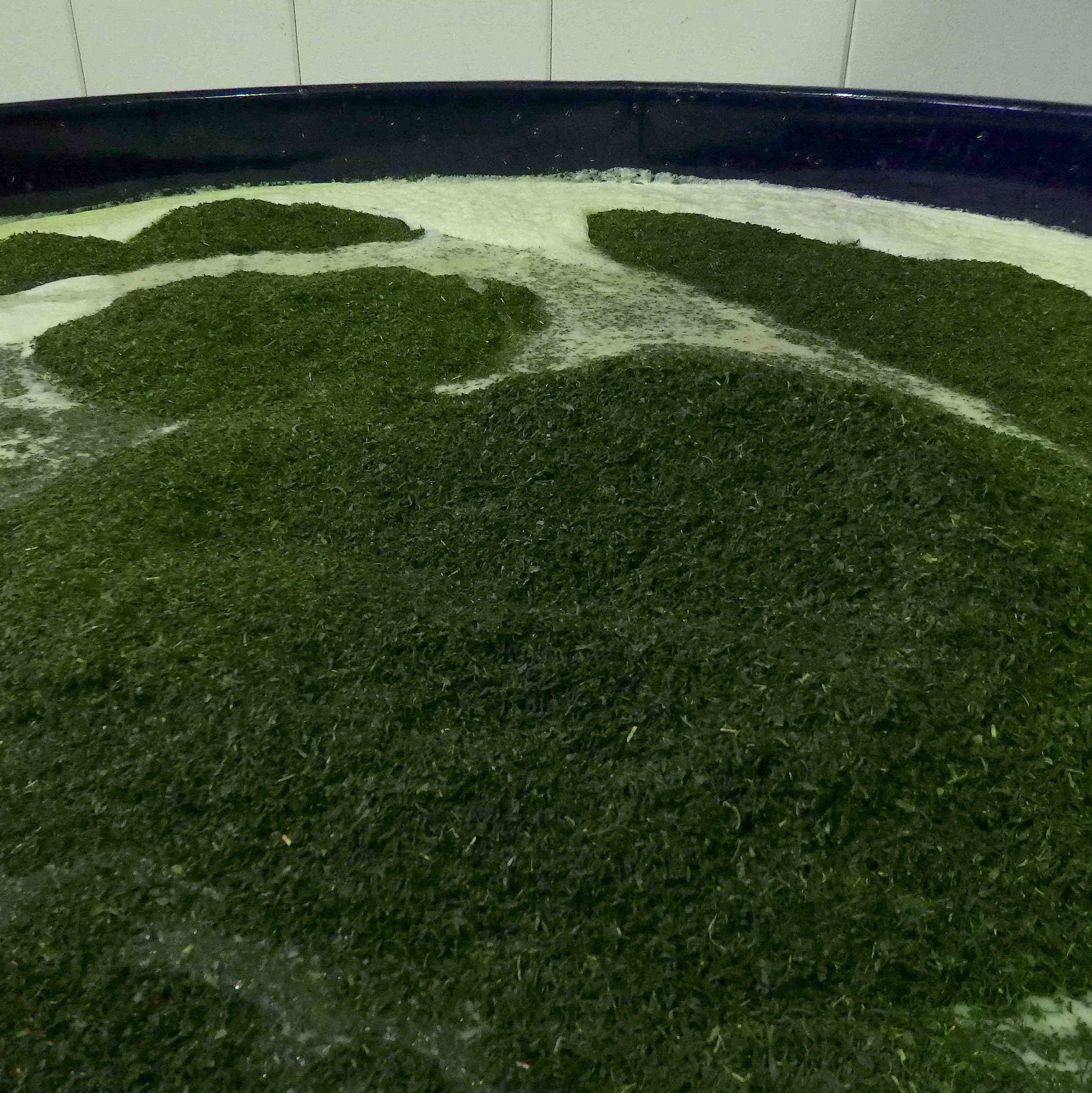 Freshly picked yabukita green tea leaves from Ureshino are steamed and immediately delivered to our distillery for their introduction into the second ‘moromi’ (mash). The leaves are co-fermented in the moromi, together with two-rowed barley and black koji rice, imparting the rich flavors of green tea. The mash is then distilled only one time in the traditional way to capture the natural essence of these local harvests.